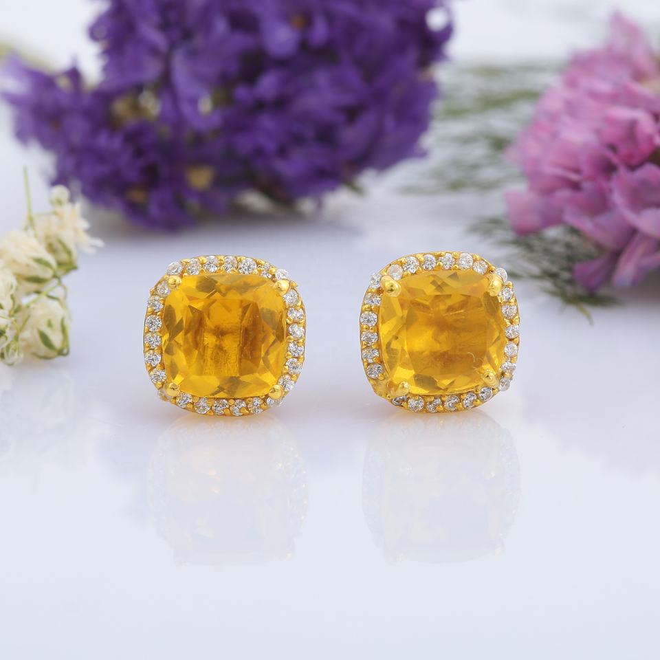 Pendientes de Plata de Ley 925 para mujeres y niñas, piedra Citrina de moda, Zirconia chapada en oro para fiestas