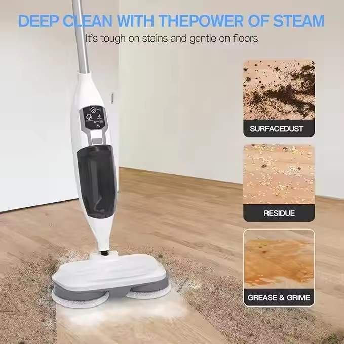 Mopa de Vapor Multifuncional de Gran Venta con Tanque de Agua Desmontable, Inalámbrica, Doble Tanque para Limpieza del Hogar y del Coche, Duradera, Eléctrica de 1300W