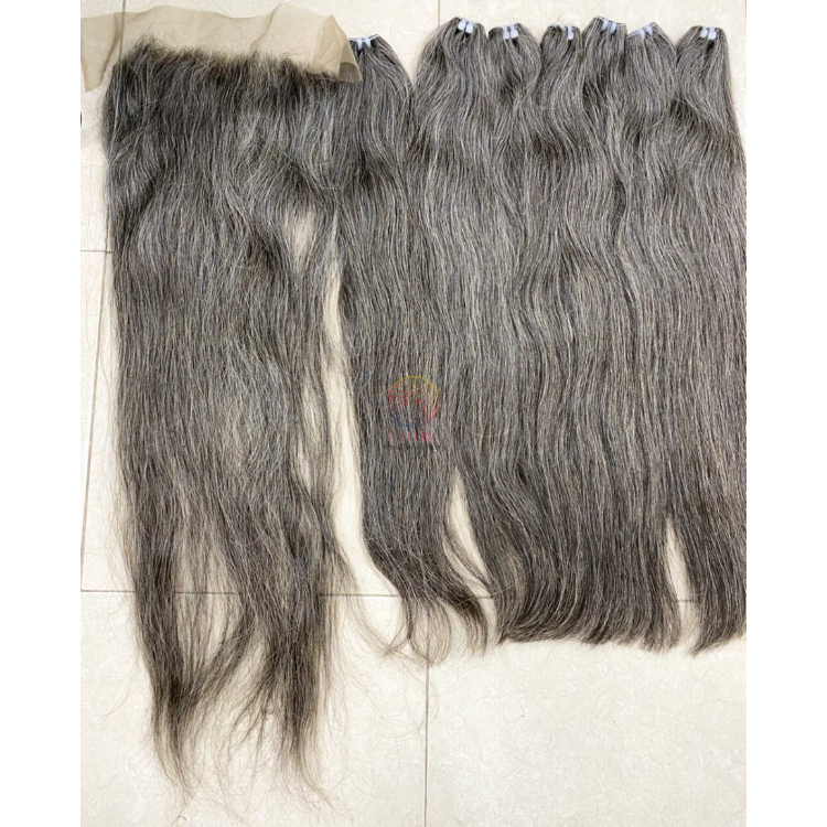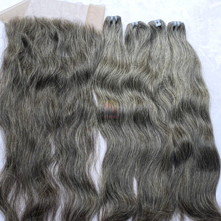 Textura del cabello:Paquetes de cabello humano gris y cierre