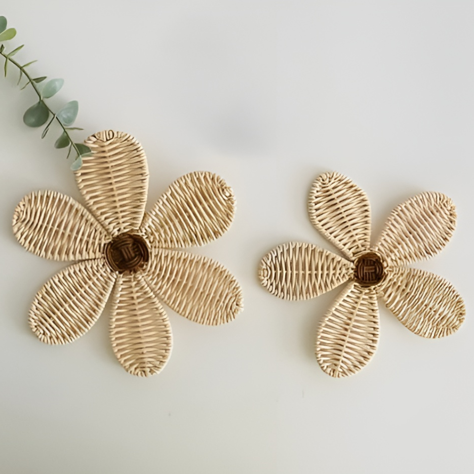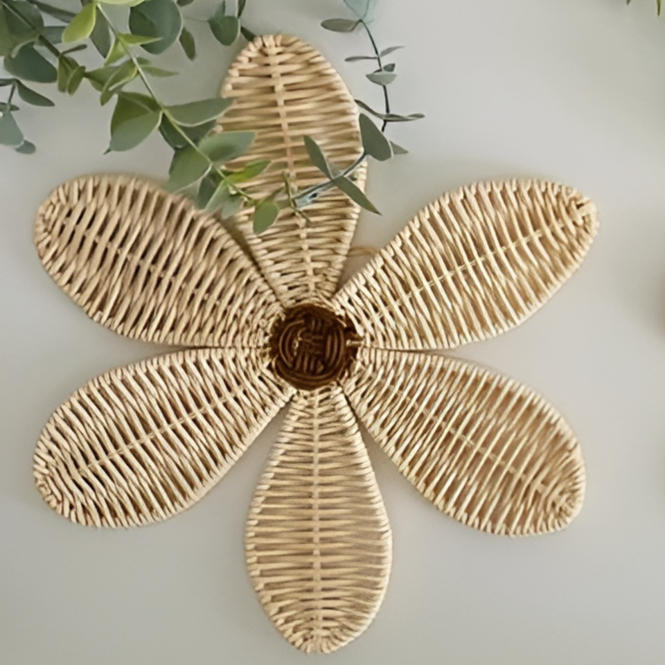 Venta caliente juego de ratán natural hecho a mano de flores decoración colgante de pared para decoración del hogar y regalo para amigo en eventos especiales