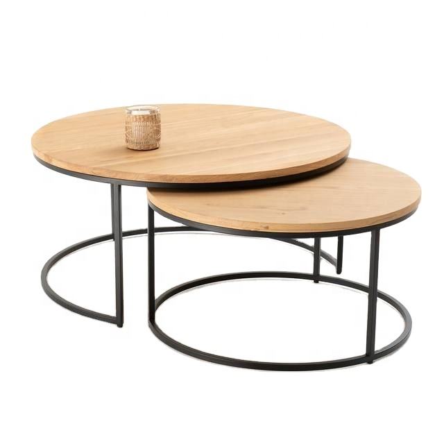 Juego de mesa de anidación, dos acabado negro y forma redonda con tapa de madera para decoración del hogar, superventas