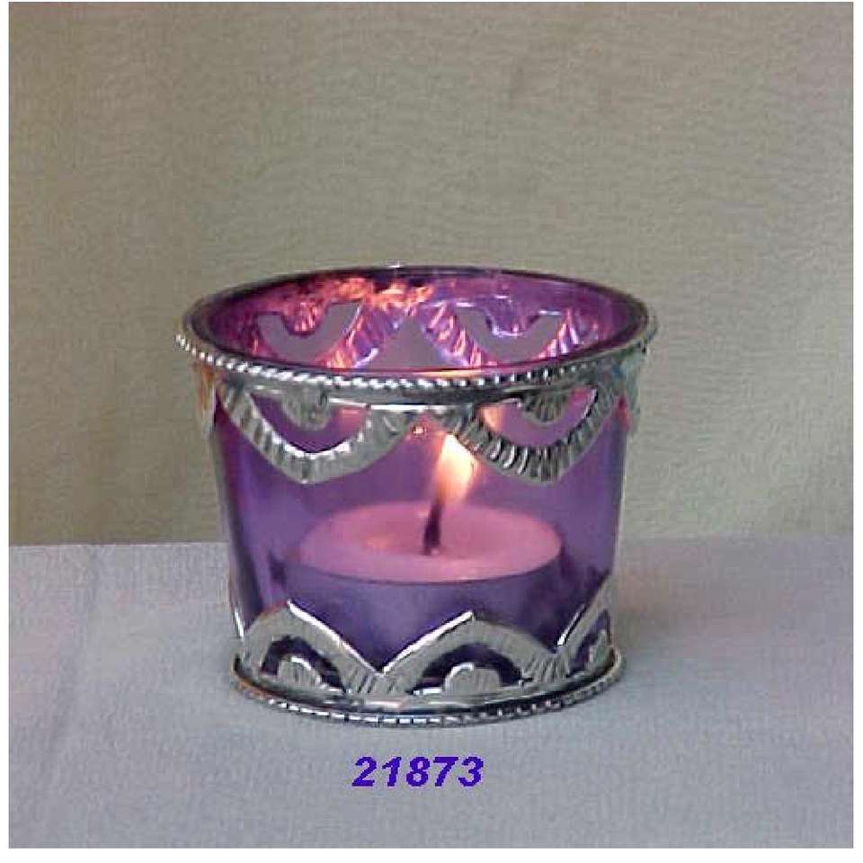 Venta caliente Nueva llegada Metal Tea Light Purple Glass Silver Brass Tealight Votive Holder