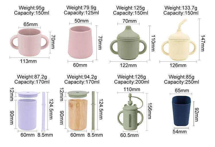 Venta caliente nueva llegada Mini silicona bambú bebé Sippy taza suave personalizado bebé aprendizaje comida taza silicona entrenamiento taza con pajita