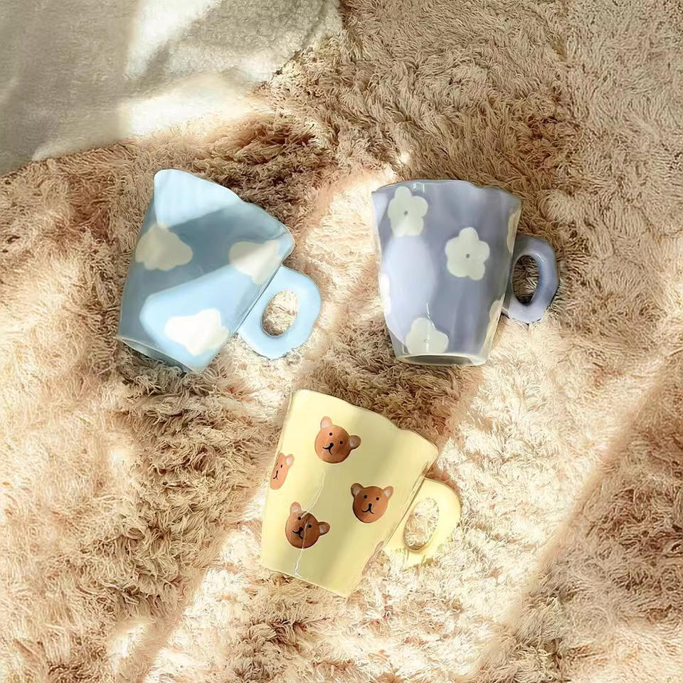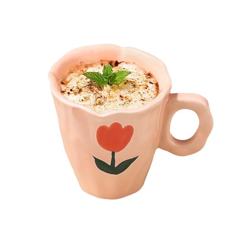 Tazas de Café de Cerámica Hechas a Mano con Diseño Floral, Lindas y Novedosas, con Capacidad Personalizada y Logotipo, Taza de Porcelana Coreana para Té con Leche, Ideal para Regalo