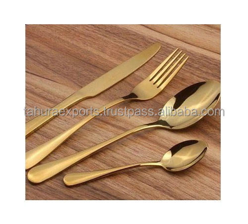 Venta caliente New Look Vajilla Juego de cubiertos de acero inoxidable de metal Cubiertos en juego de cubiertos dorados en diferentes tamaños
