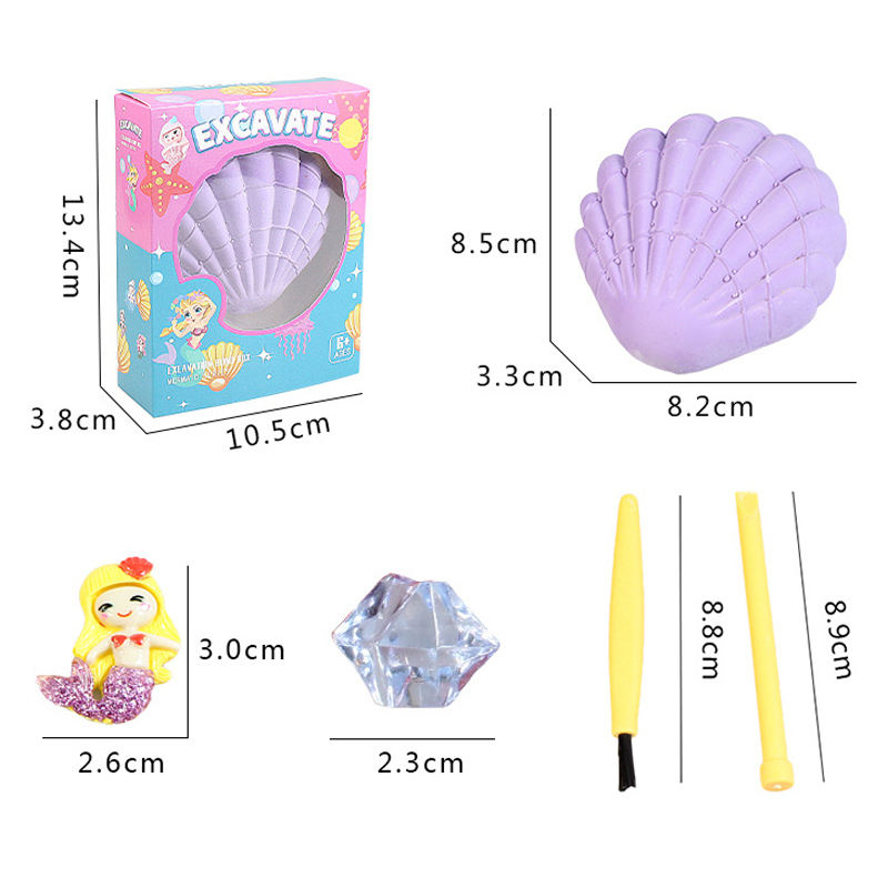 Detalles del embalaje:Venta caliente OEM caja ciega arqueológica Mini carcasa de plástico serie sirena Kit de excavación juguete para ciencia preescolar