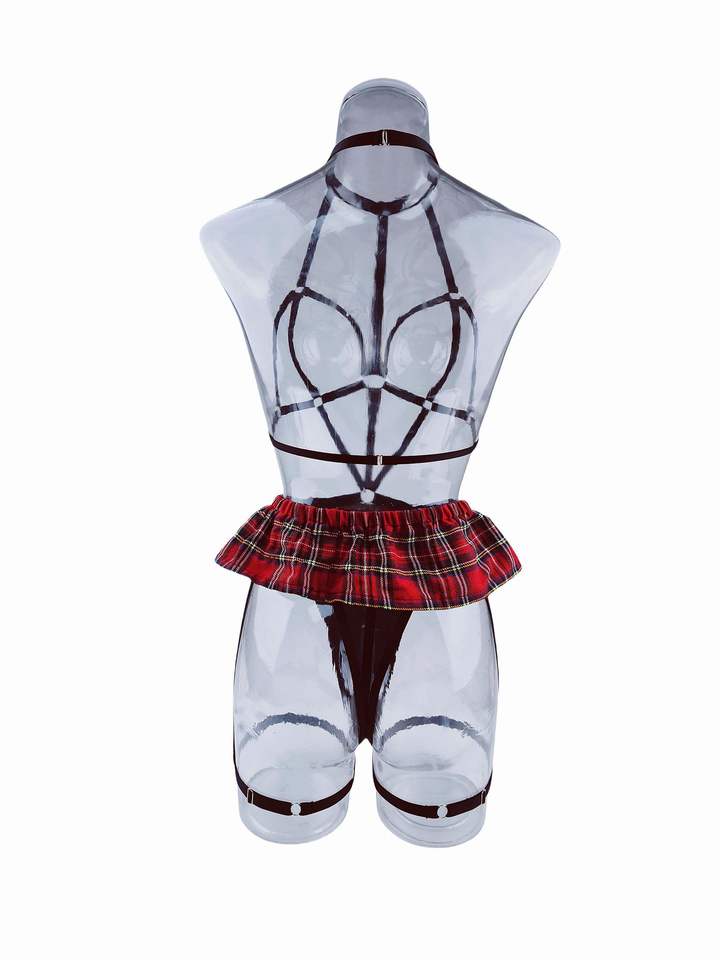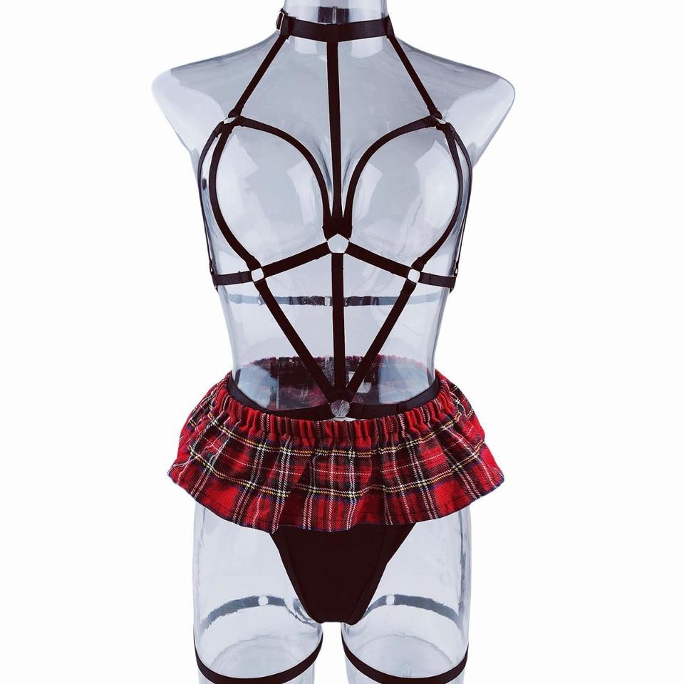 Conjunto de lencería sexy ajustable con diseño de pecho descubierto y estampado a cuadros, lencería hueca para mujer, ropa sexy y seductora para mujer