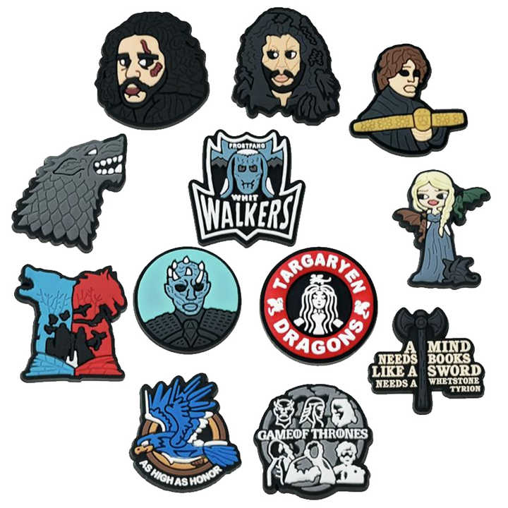 Venta caliente PVC caucho suave Juego de tronos serie amigable EVA zapato encantos accesorios personalizado DIY Logo 7 días Envío rápido