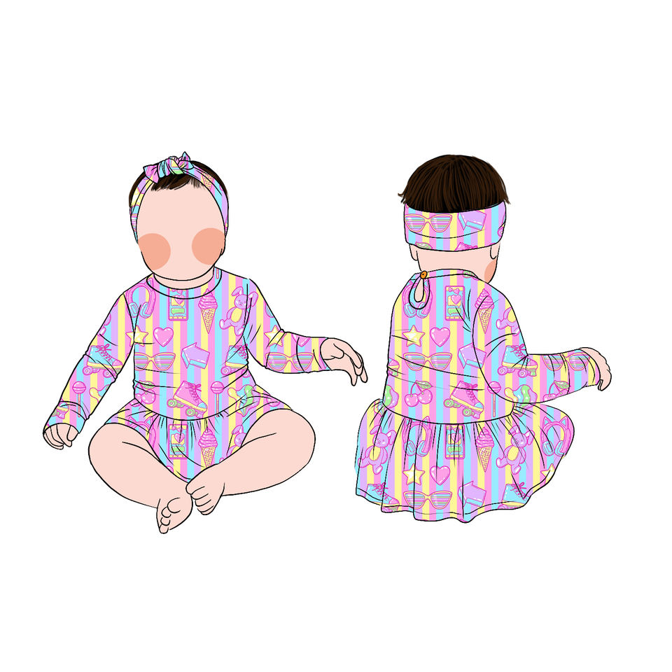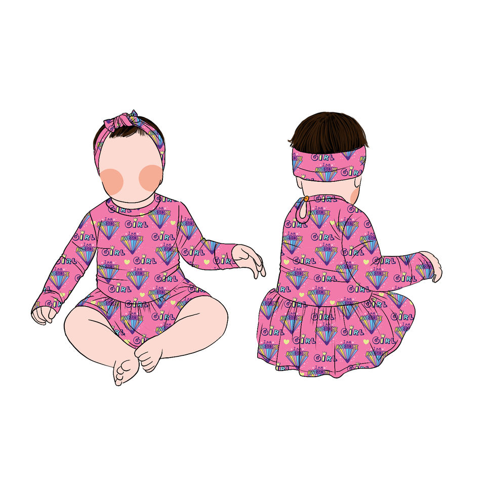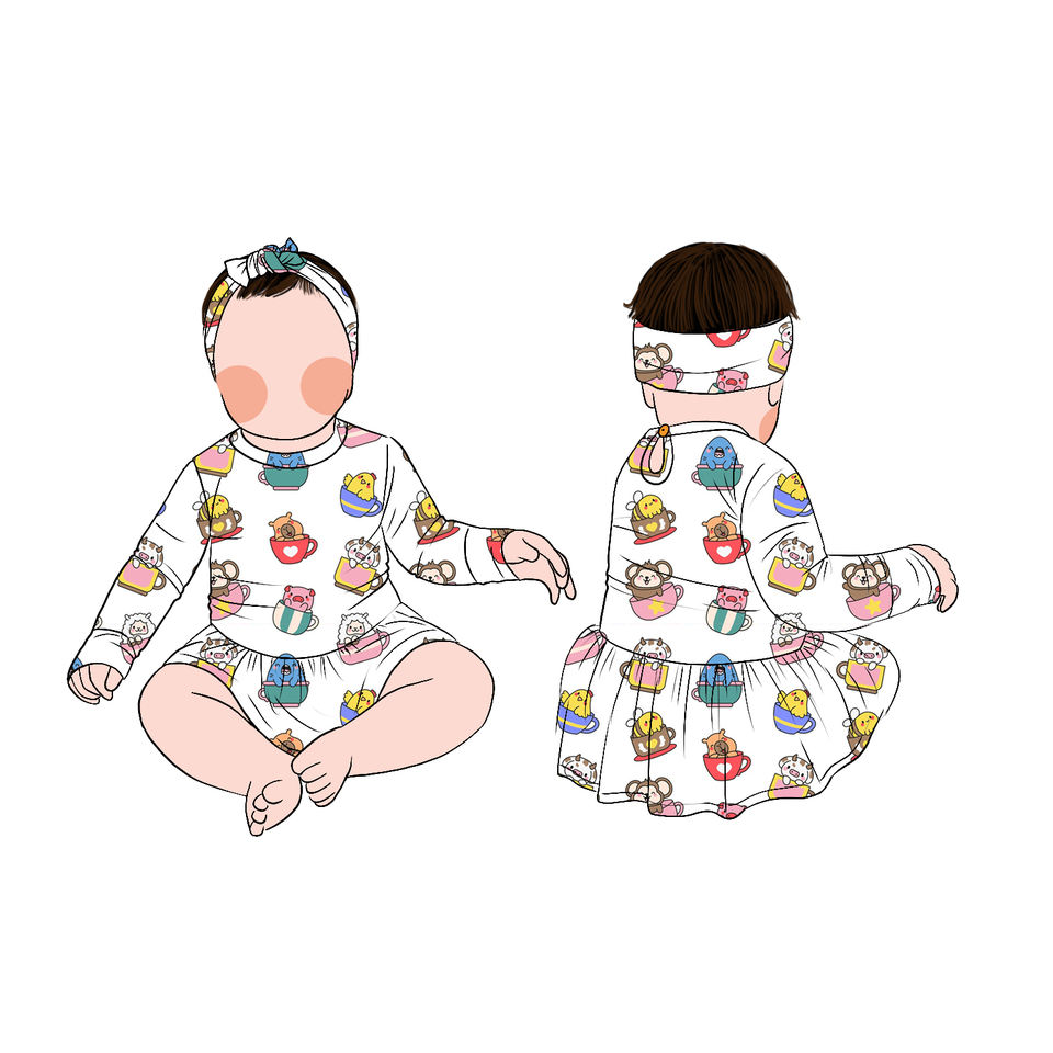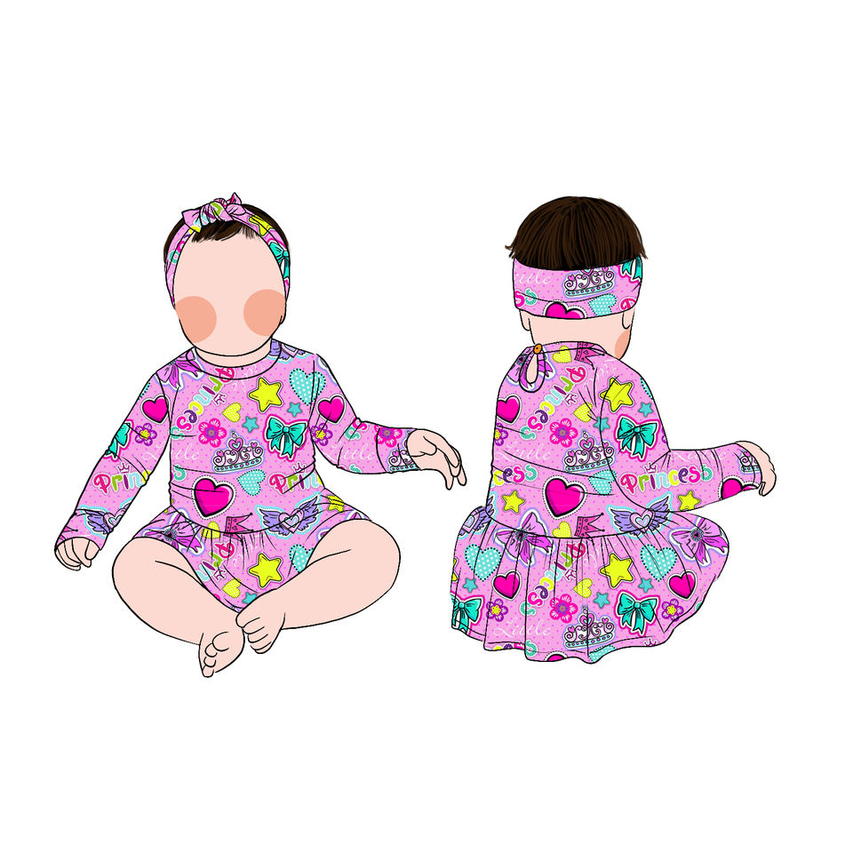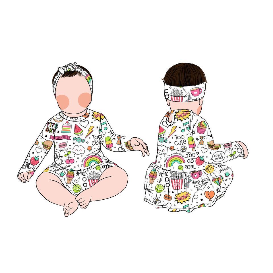 Venta caliente personalidad Simple personalizado lindo impreso bebé niña suave proteína de leche fibra manga larga falda giratoria mameluco