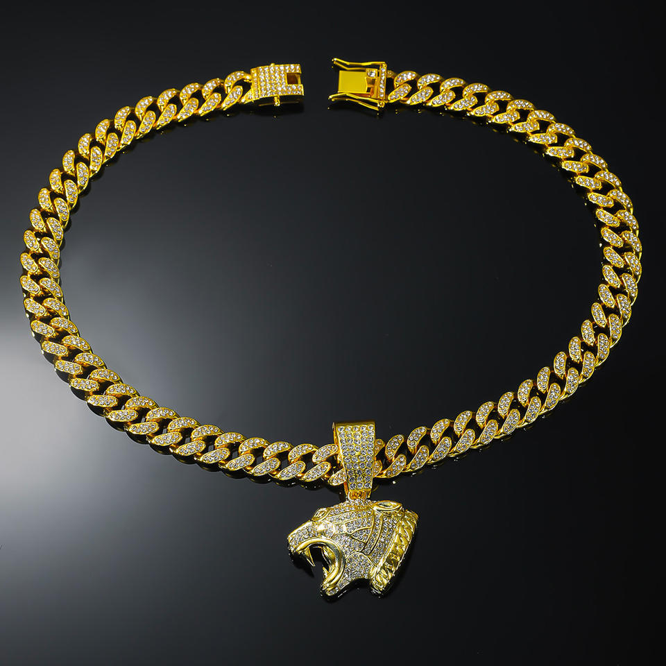 Collar con Colgante de Cabeza de Leopardo de Aleación, Diseño Popular y Personalizable, Venta Caliente, Joyería de Moda para Hombre, Estilo Hiphop, Venta al Por Mayor