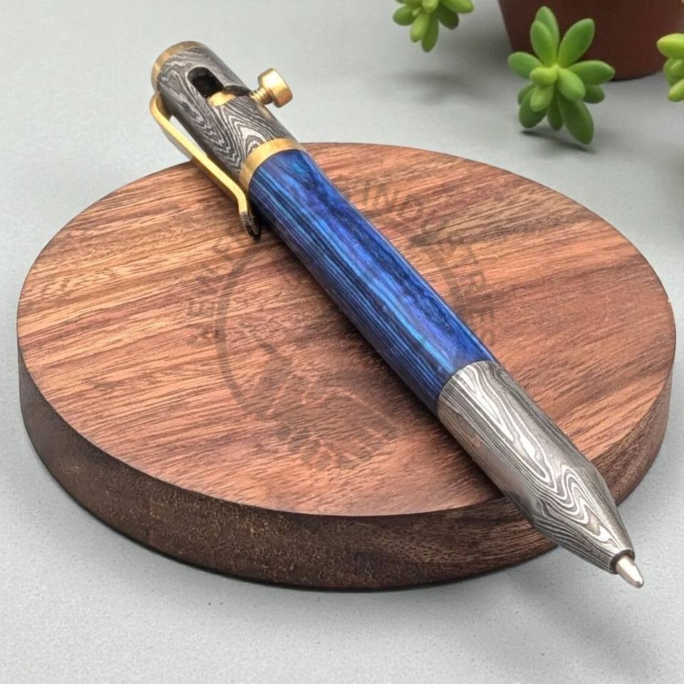 Acero de Damasco, madera náutica azul, latón sólidoMaterial