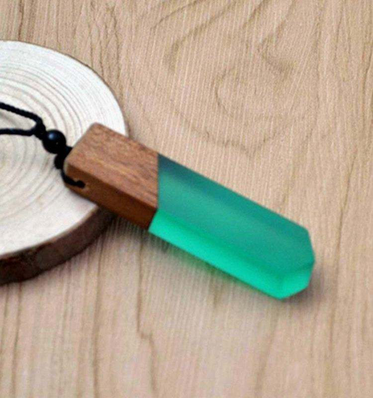 Collar con Colgante de Resina y Madera Rectangular Hecho a Mano y Personalizado, en Oferta