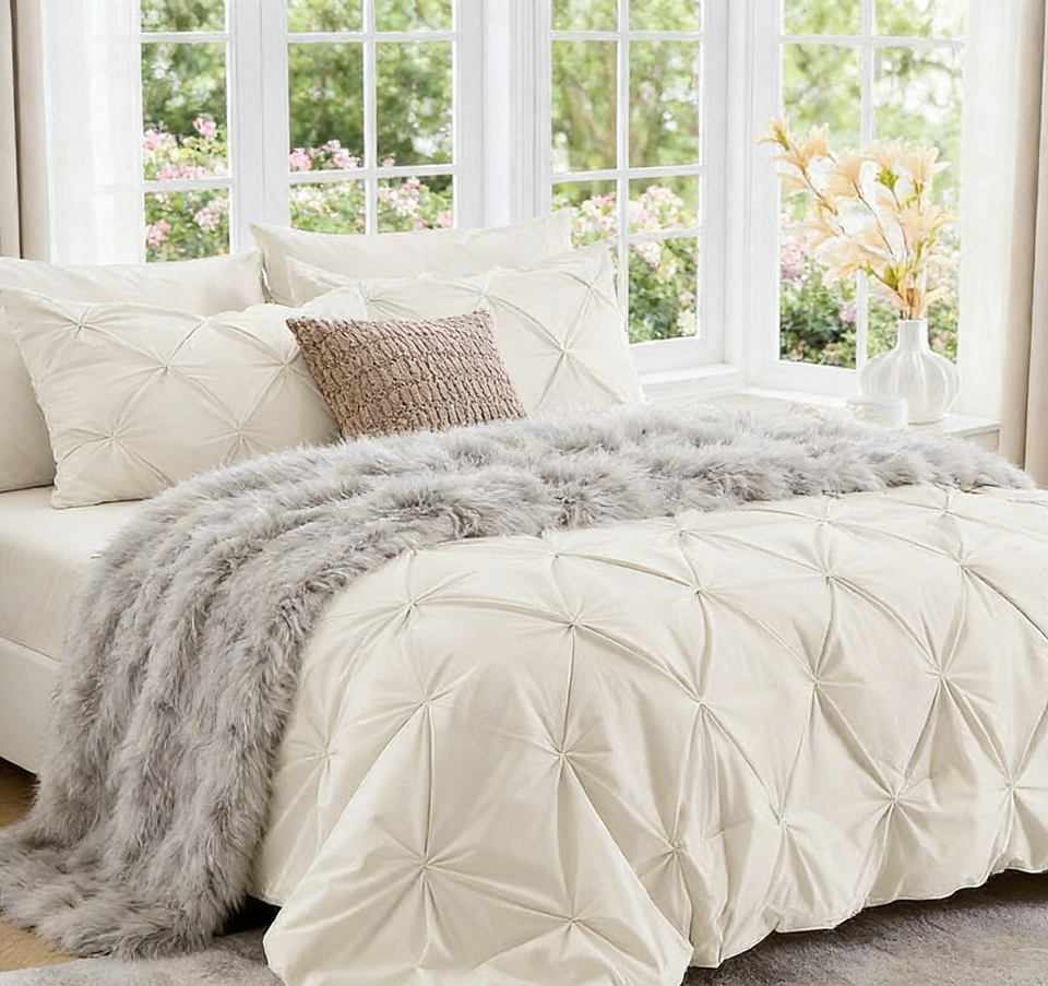Juego de Edredón Queen Pintuck de 7 Piezas, Color Beige, para Todas las Estaciones, Juego de Ropa de Cama Completo, Fabricante