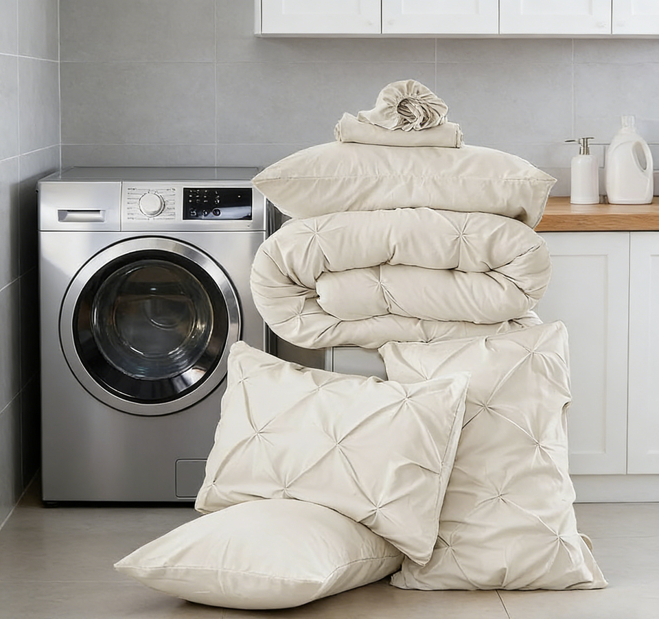 1 edredón, 4 fundas de almohada, 1 sábana ajustable, 1 sábana encimera