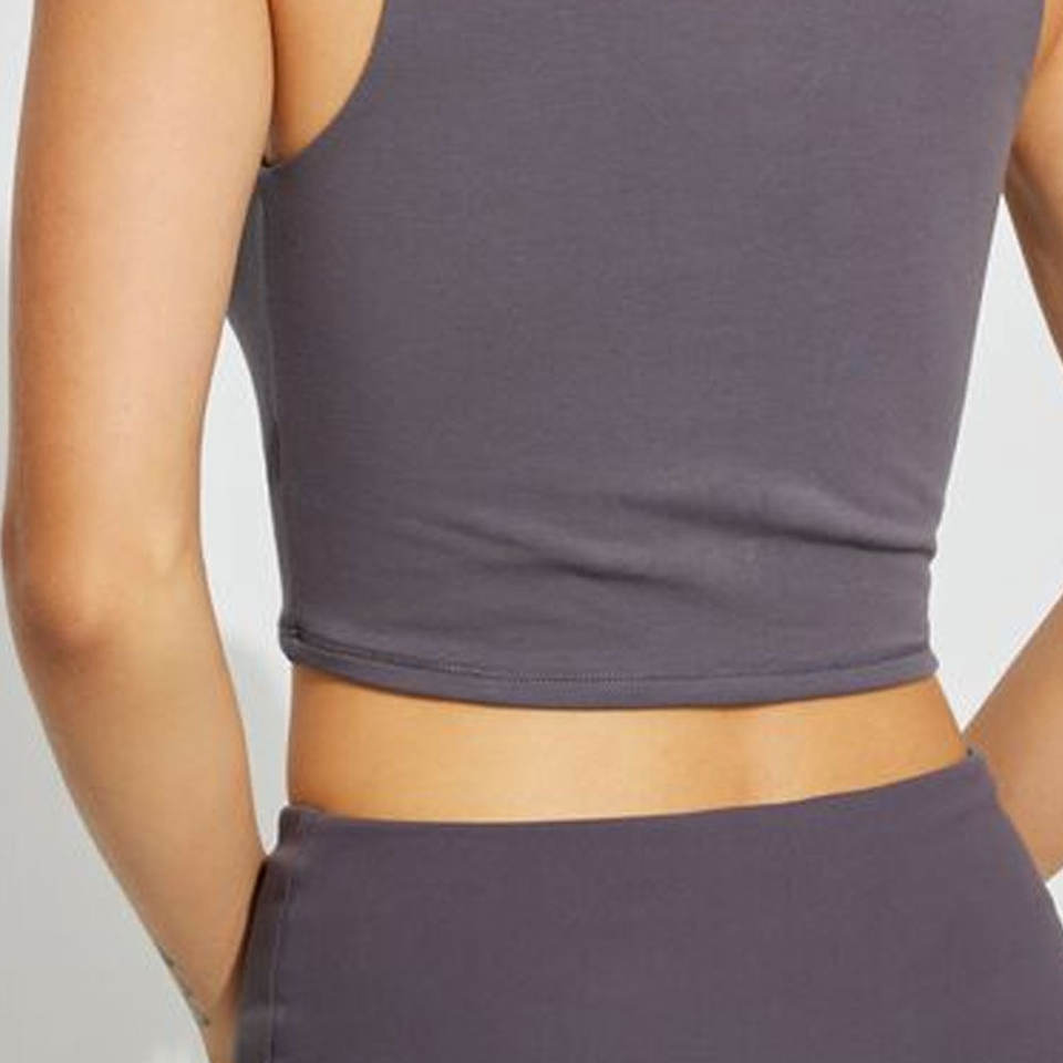 Top corto de manga corta de tela de lona de Color liso ecológico para mujer, nuevo artículo en línea, precio bajo