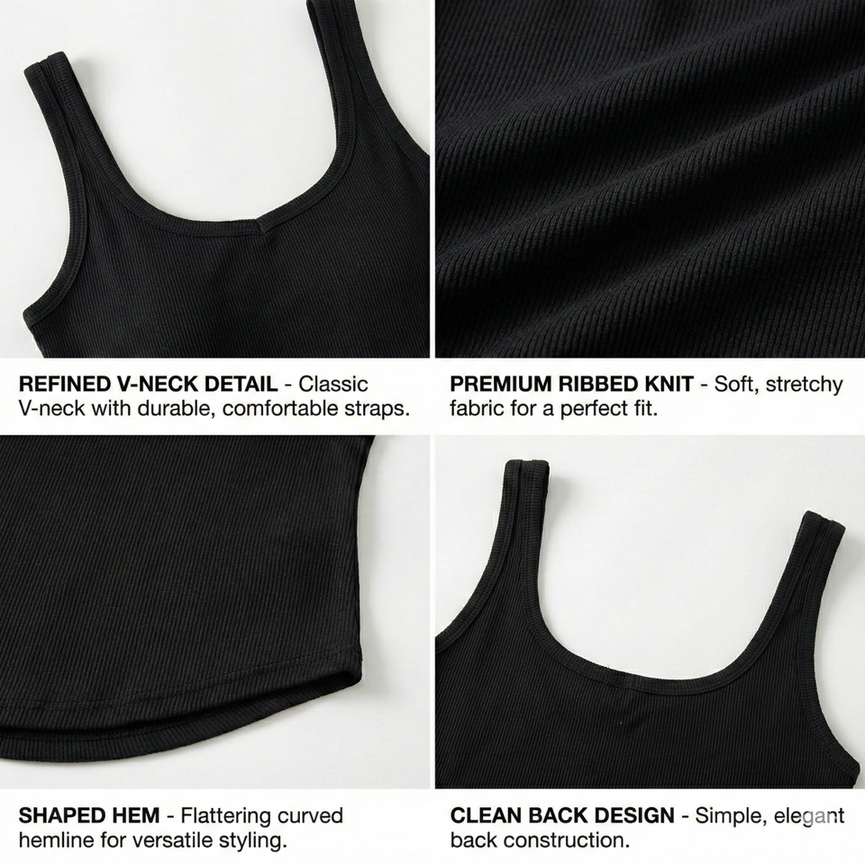 Top de tirantes acanalado liso de moda para mujer, sexy, ajustado, con cuello redondo, chaleco informal de verano, camiseta básica, económicos, con etiquetas personalizadas.
