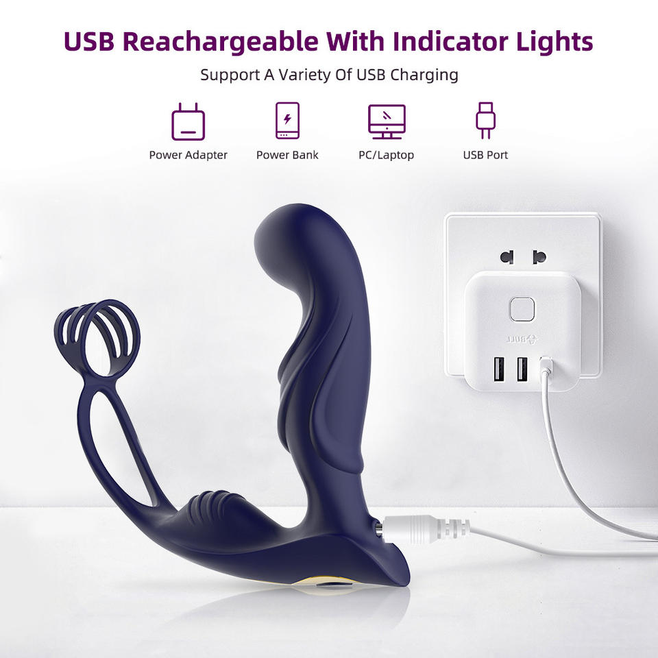 Vibrador Anal con 9 Patrones de Vibración para Hombre, Masajeador de Próstata de Silicona y Tapón Anal, Anillo Vibrador