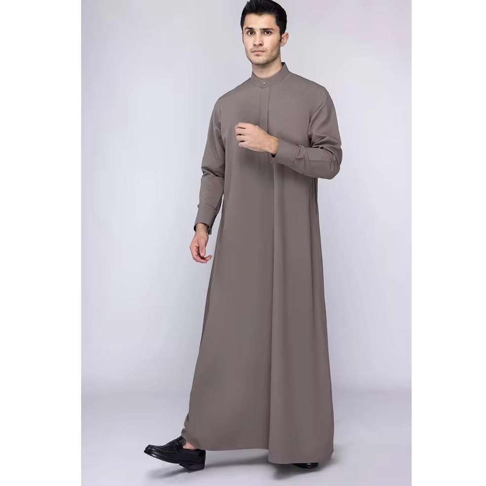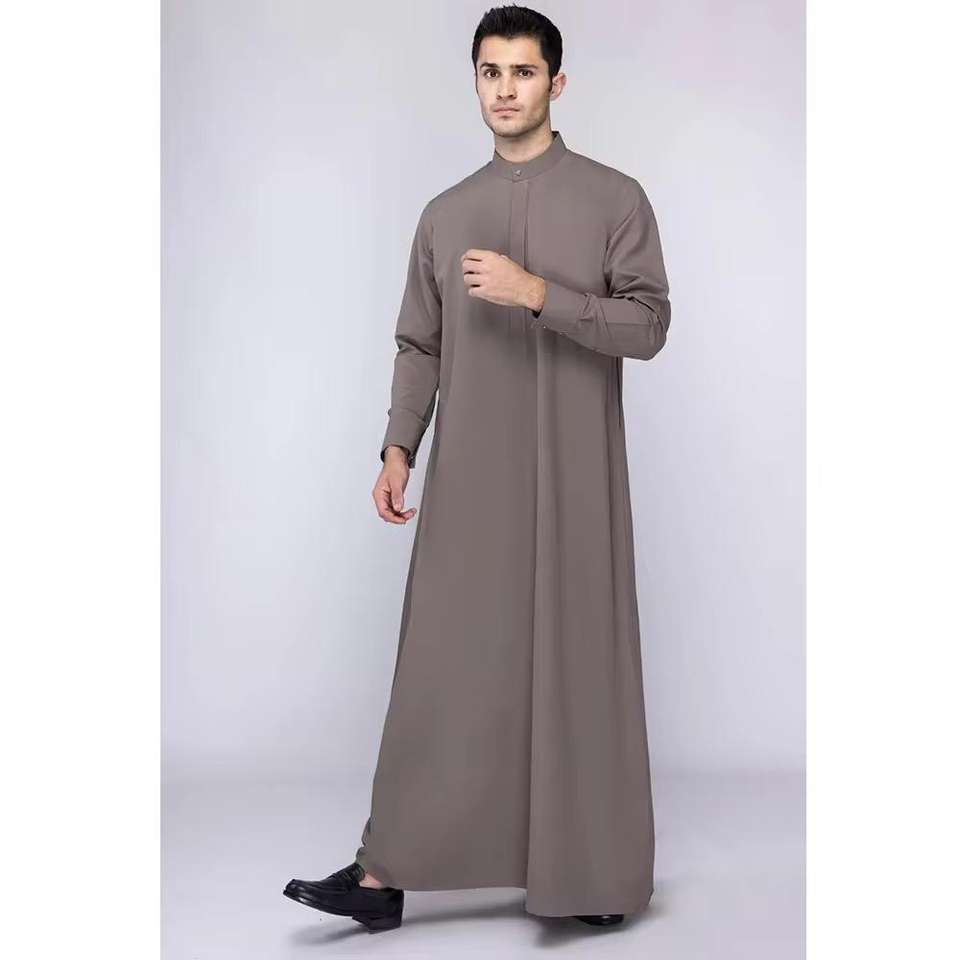 Thobe/Kanzu de Manga Larga con Cuello Alto de Poliéster, Color Sólido, Ropa Islámica para Hombres Musulmanes, Thobe/Thawb