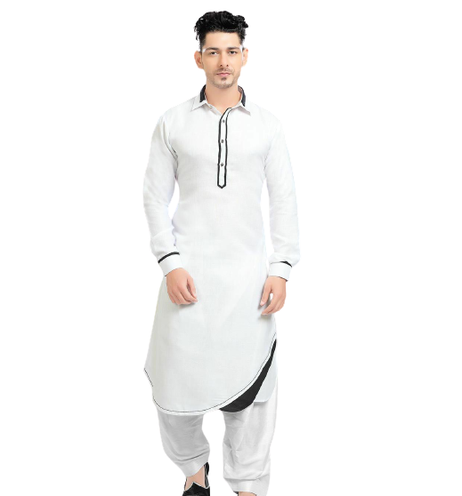 Shalwar Kameez de Manga Larga con Cuello Alto de Poliéster en Color Blanco Sólido, Vestido Musulmán para Hombre, Salwar Kameez Islámico