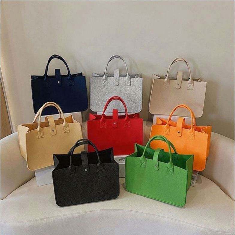Bolsa de Compras de Fieltro Reutilizable, Portátil, de Gran Capacidad, Color Sólido, Personalizada, con Asa