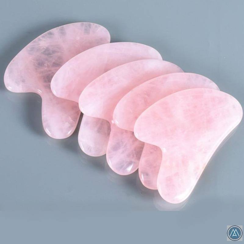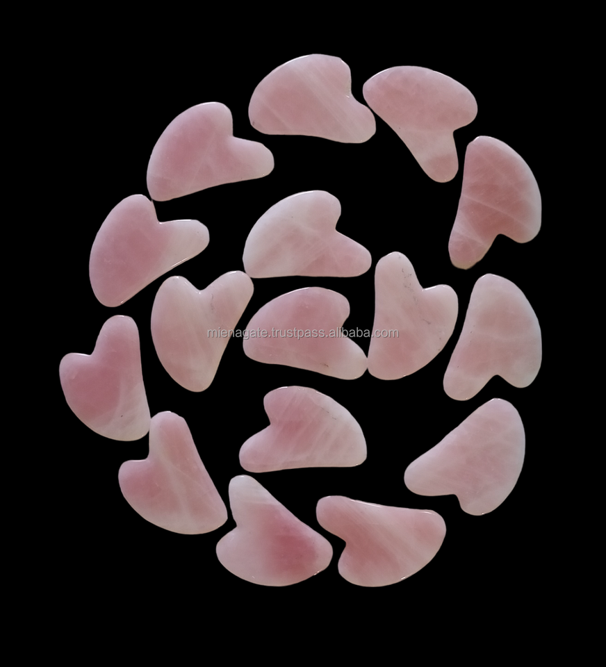 Venta caliente Premium piedra Natural Jade cuarzo rosa piedra preciosa logotipo personalizado tallado amor cara masajeador Rosa Gua Sha semiprecioso