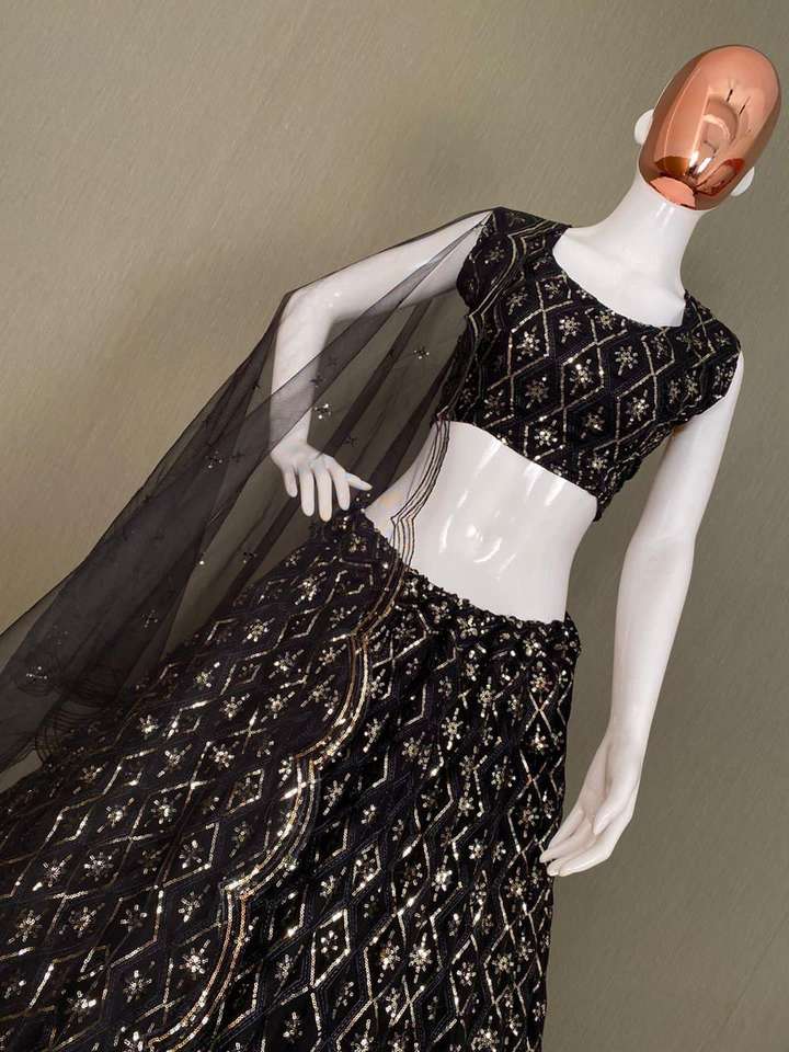 Lehenga Choli-ropa de fiesta de compromiso, de calidad superior, de Color negro