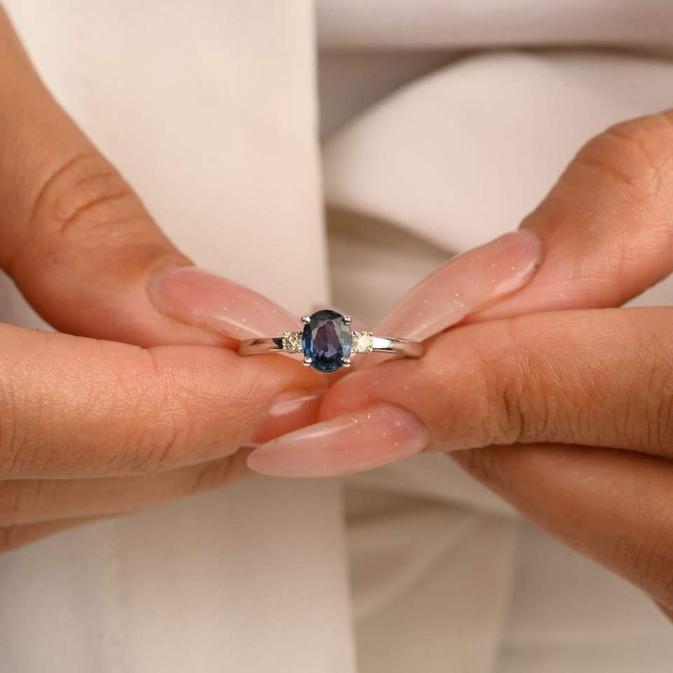 Piedras preciosas:Zafiro azul natural y diamante
