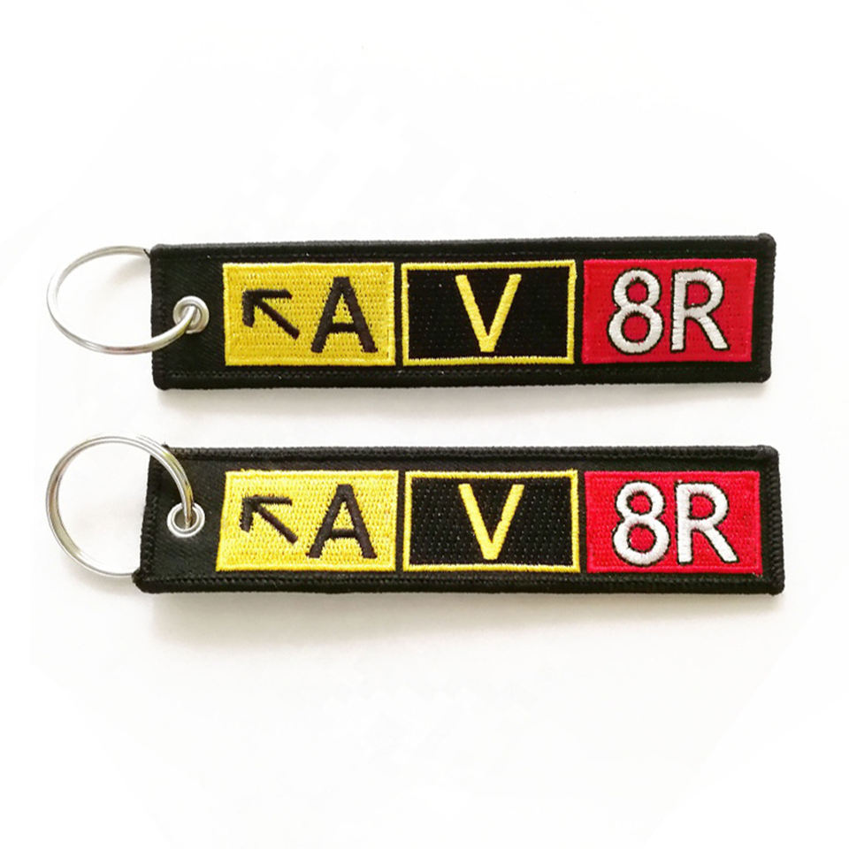 Venta caliente regalo promocional logotipo personalizado marca vuelo tela bordada tejido sublimación Jet etiquetas llavero a granel
