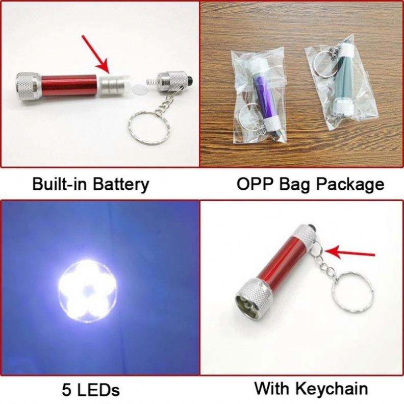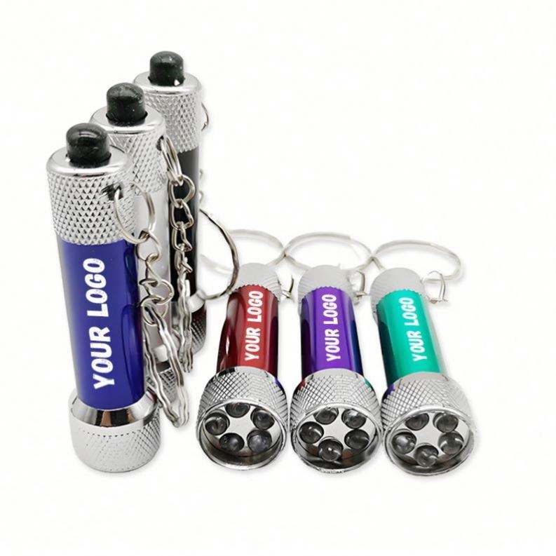 Llavero con Mini Linterna Promocional en Oferta, Mini Antorcha de Aluminio con Anillo para Llaves, Llaveros con Luz LED de 5 Leds y Logotipo Personalizado