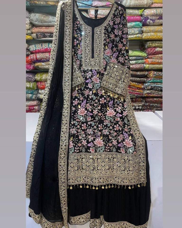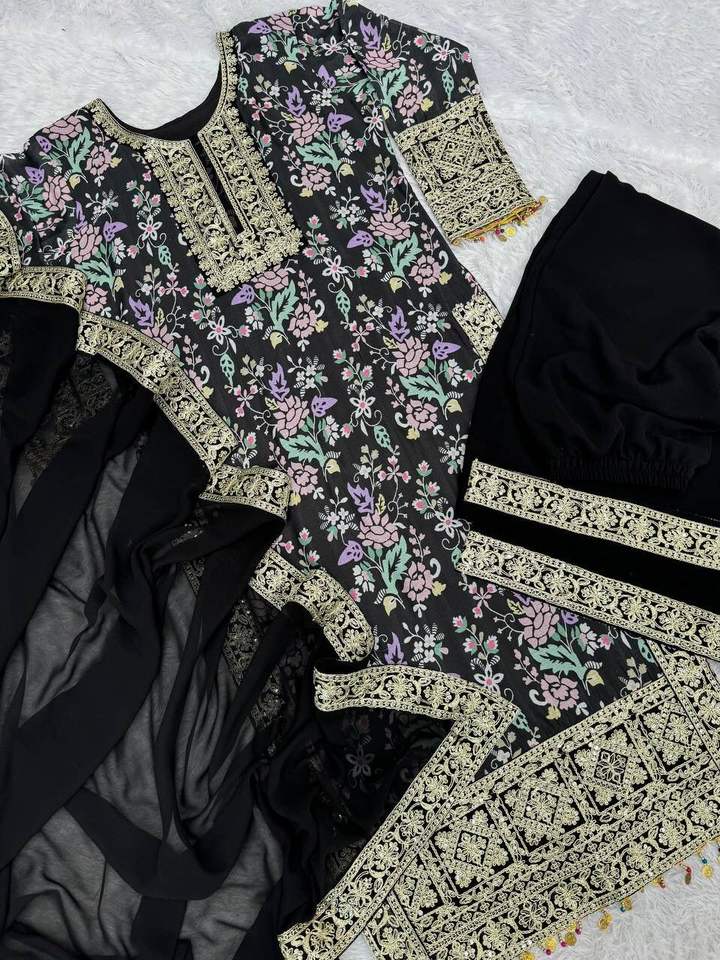 Product Name:Chinon Silk Top Palazzo And Dupatta Set