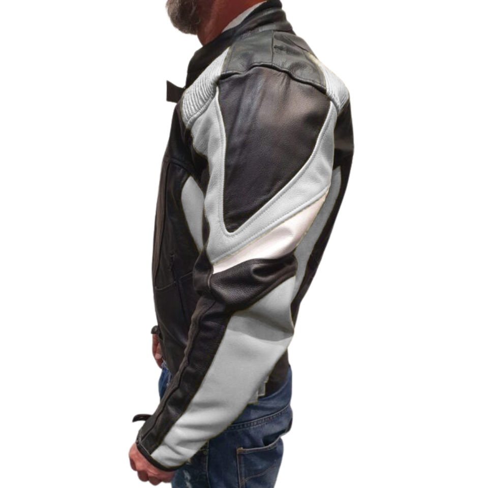 Venta caliente Racing chaqueta de cuero de vaca genuino para hombres motociclismo de invierno con protecciones Color negro/gris