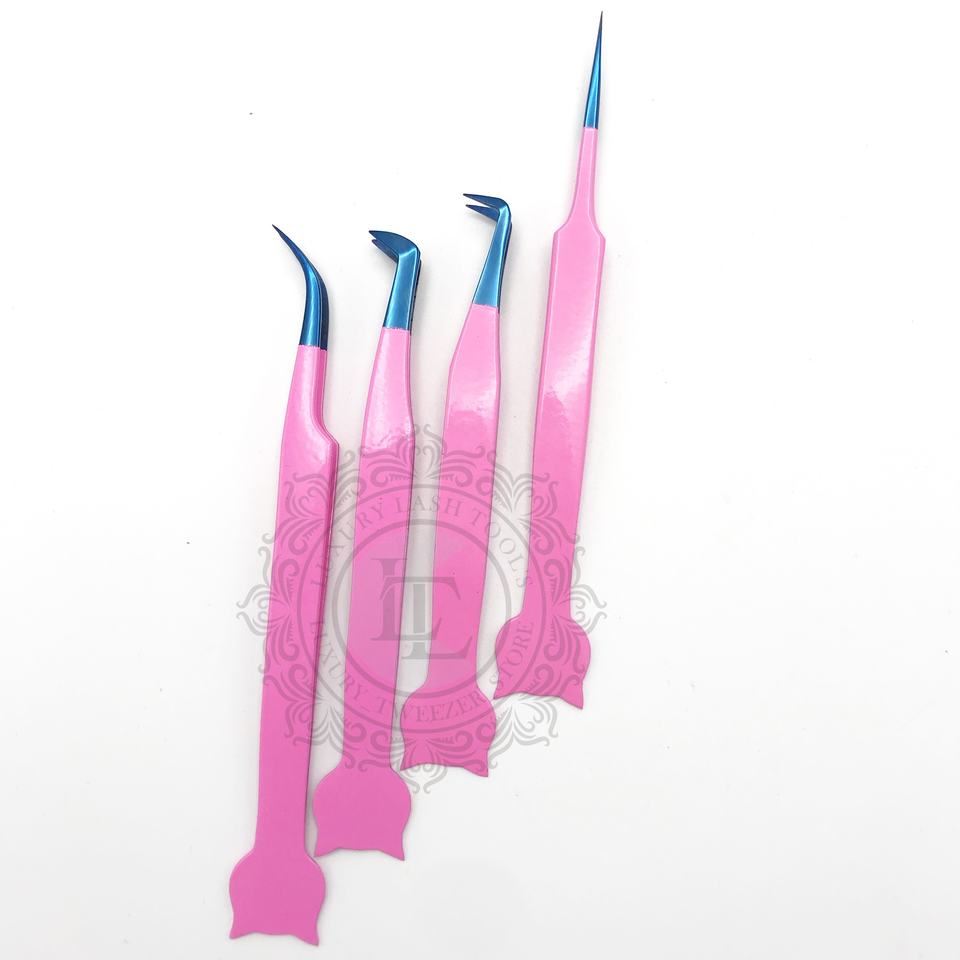 Pinzas para pestañas de acero inoxidable de alta calidad, superventas, punto arcoíris, rosa oscuro, agarre liso sostenible, opción de logotipo privado