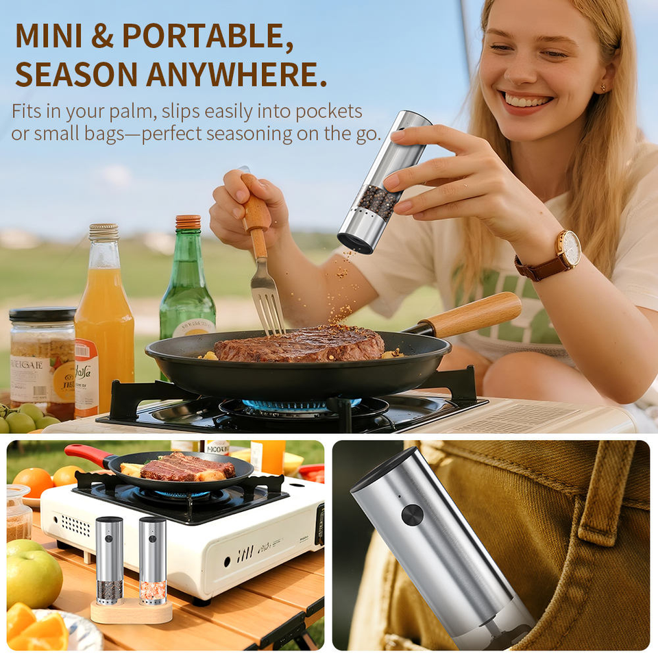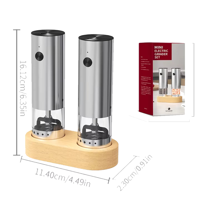 Juego de Molinillos de Sal y Pimienta Recargables de Acero Inoxidable, Molinillos Eléctricos Automáticos con Base de Almacenamiento para Uso en Restaurantes