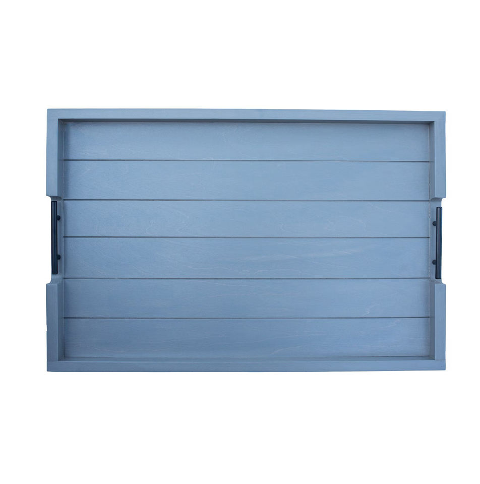 Bandeja rectangular de madera de la porción con las manijas del metal