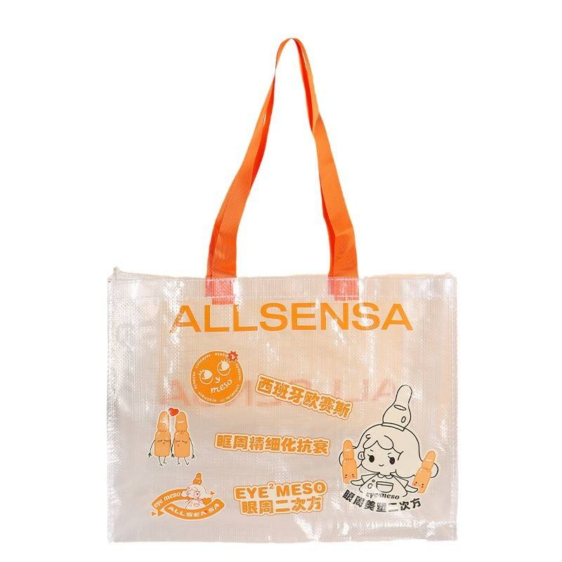Venta caliente reciclar polipropileno transparente PP tejido laminación bolsas de compras promocionales
