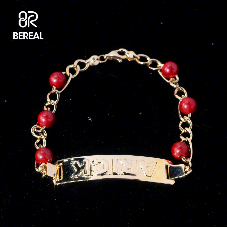 Venta caliente ágata roja cuenta roja nombre ID pulsera salida de fábrica oro amarillo 925 plata esterlina bebé pulsera fina joyería de mujer