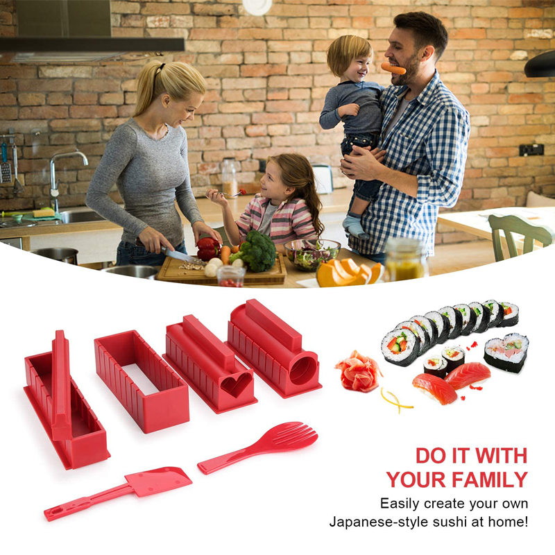 Juego de utensilios de cocina para Sushi, Kit de utensilios para hacer Sushi de uso fácil para principiantes, color rojo, superventas
