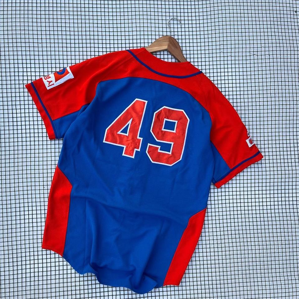Venta caliente Retro Uniformes de béisbol Unisex Rojo y azul Camisetas de béisbol personalizadas Ropa de softbol con Jersey impreso Conjuntos OEM