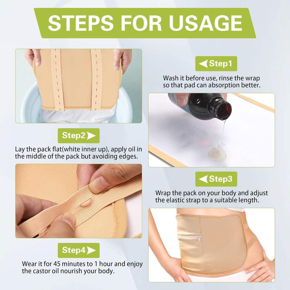 Paquetes de compresas de aceite de ricino reutilizables de Venta caliente para desintoxicación del hígado insomnio estreñimiento e inflamación, envoltura de aceite de ricino orgánico