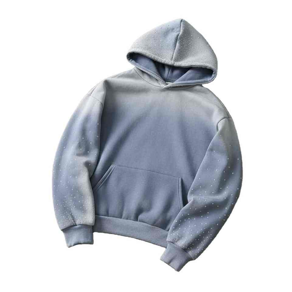 Sudadera con Capucha Informal de Algodón 100% con Pedrería, Talla Grande, Cálida para Invierno, para Hombre
