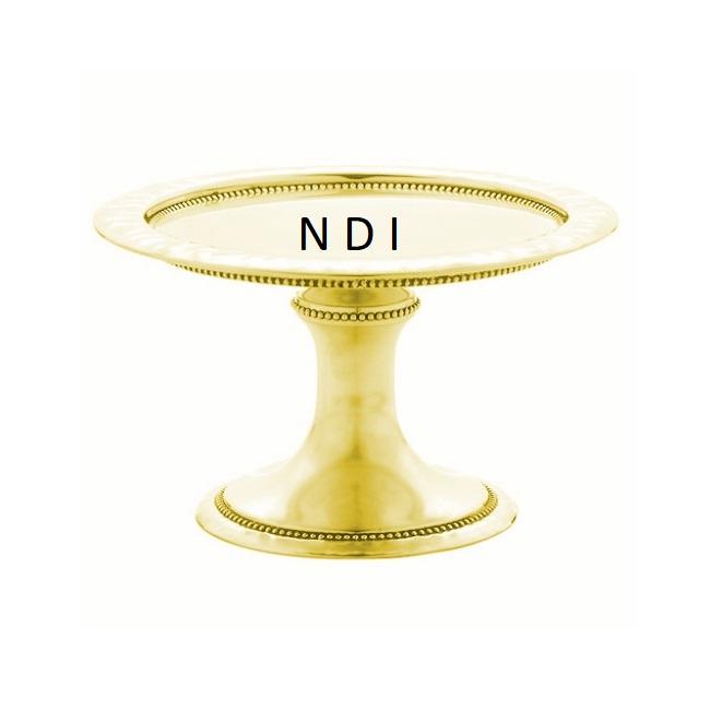 Soporte de metal para servir y decorar pasteles redondos, con acabado dorado y borde de lunares, ideal para hoteles, gran éxito de ventas.
