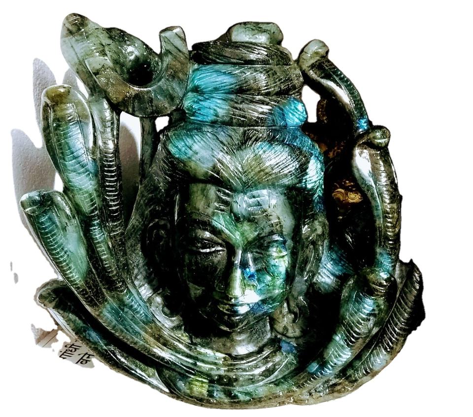 Estatua de Shiva Tallada a Mano en Piedras Preciosas Rudra, Escultura de Piedras Naturales para Decoración del Hogar, Cristal de Sanación Budista, Origen India
