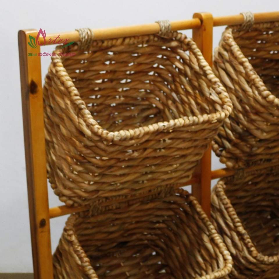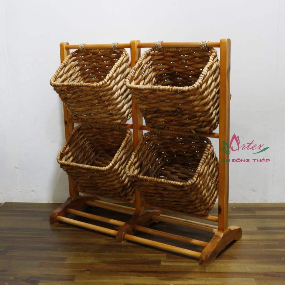 Product name:2 tier wooden rack in natural color, with 04 water hyacinth baskets