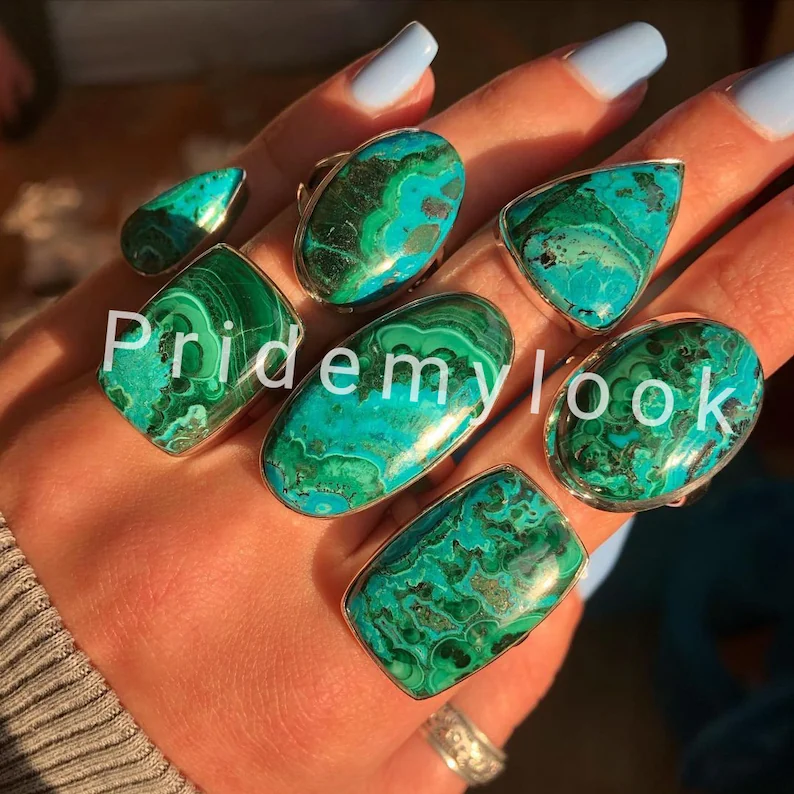 Palabra clave:Anillo de crisocola y malaquita, anillo de piedras preciosas