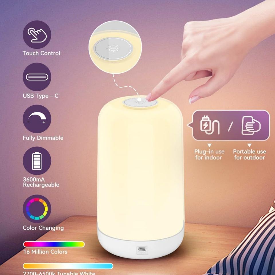 ElegirColor: Lámpara de Noche Inteligente LED con Batería de 3600mAh