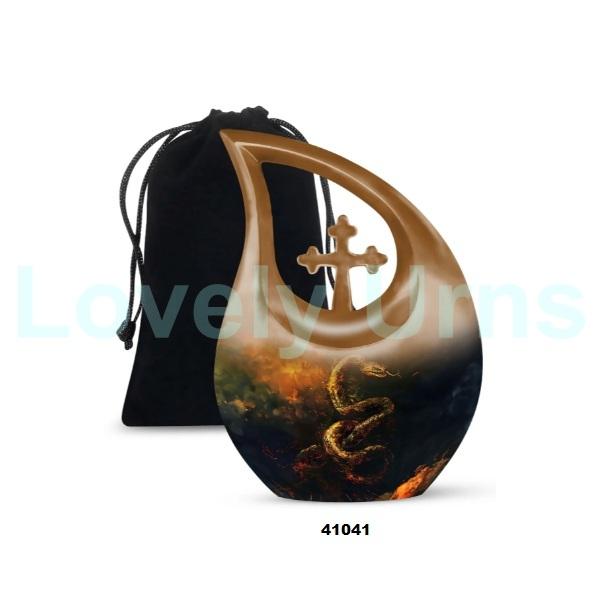 Hot Selling Snake Tear Drop Cremation Urn for Adult Human Ashes Decorative Large Cross Funeral Urn With Free Velvet Bag