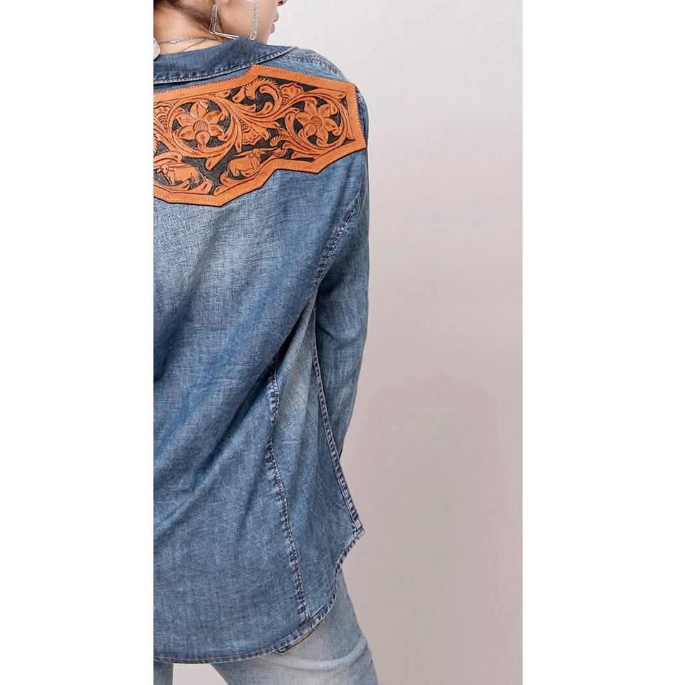 Product Name:Women Denim Shirts With Leather Patch Back