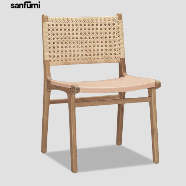 Venta caliente de madera maciza Silla de comedor de ratán respaldo de ratán y asiento de tela diseño minimalista moderno muebles de interior