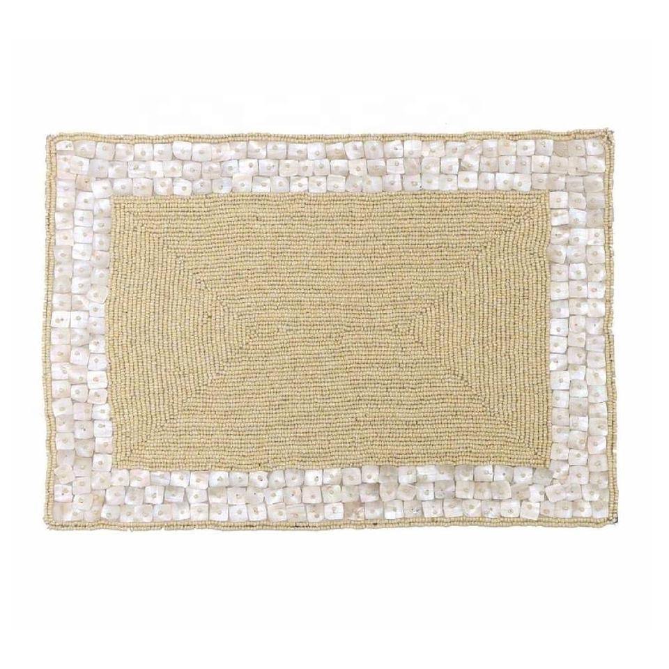 Mantel individual de cuentas de cristal cuadrado de gran venta en Color marrón con patrones, mantel de mesa hecho a mano con cuentas, placa de cargador con cuentas de cristal