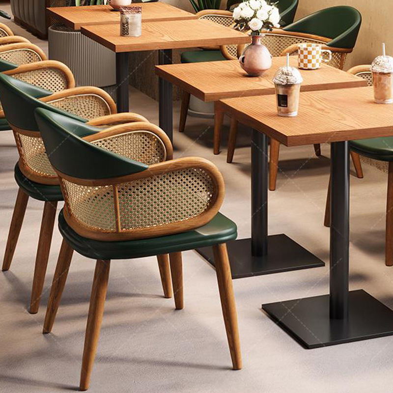 Mesa y Silla Cuadradas de Madera Maciza en Oferta, Muebles para Cafetería, Asiento de Sofá de Cuero PU, Muebles Comerciales para Restaurante